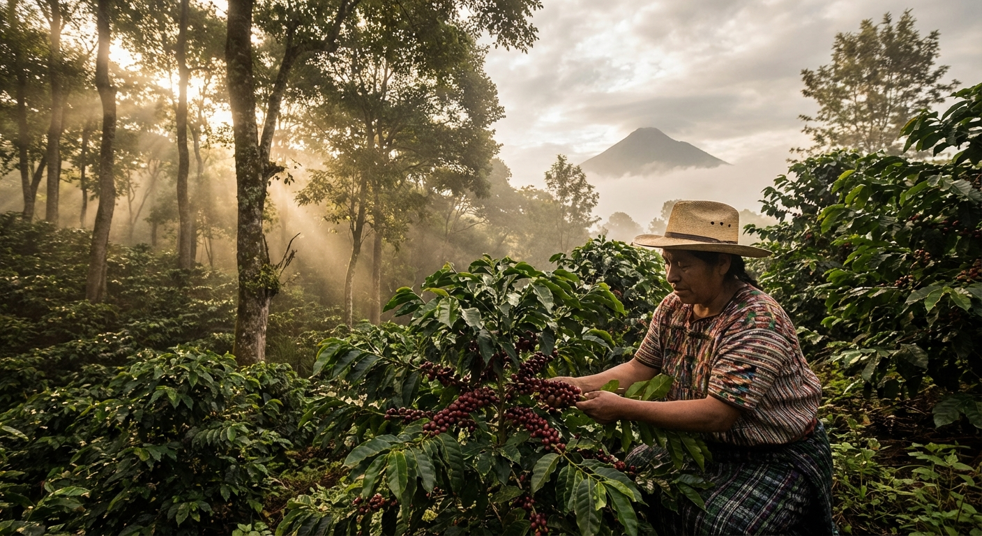 Vår kaffe kommer fra småskala kooperativer i Guatemalas høylandsregioner. Disse gårdene ligger ofte på 1400-1800 meters høyde, i skyggen av vulkaner, og bruker tradisjonelle metoder som har gått i arv gjennom generasjoner.